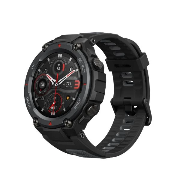 The Amazfit T-Rex Pro is high-level exploration partner, supporting four Global Navigation Satellite Systems, 10 ATM water-resistance,a blood-oxygen saturation measurement system, a weather tracker, a sunrise and sunset monitor, a current moon phase display, a compass and barometric altimeter, ultra-long 18-day battery life with typical use, and over 100 different sportsmodes.
