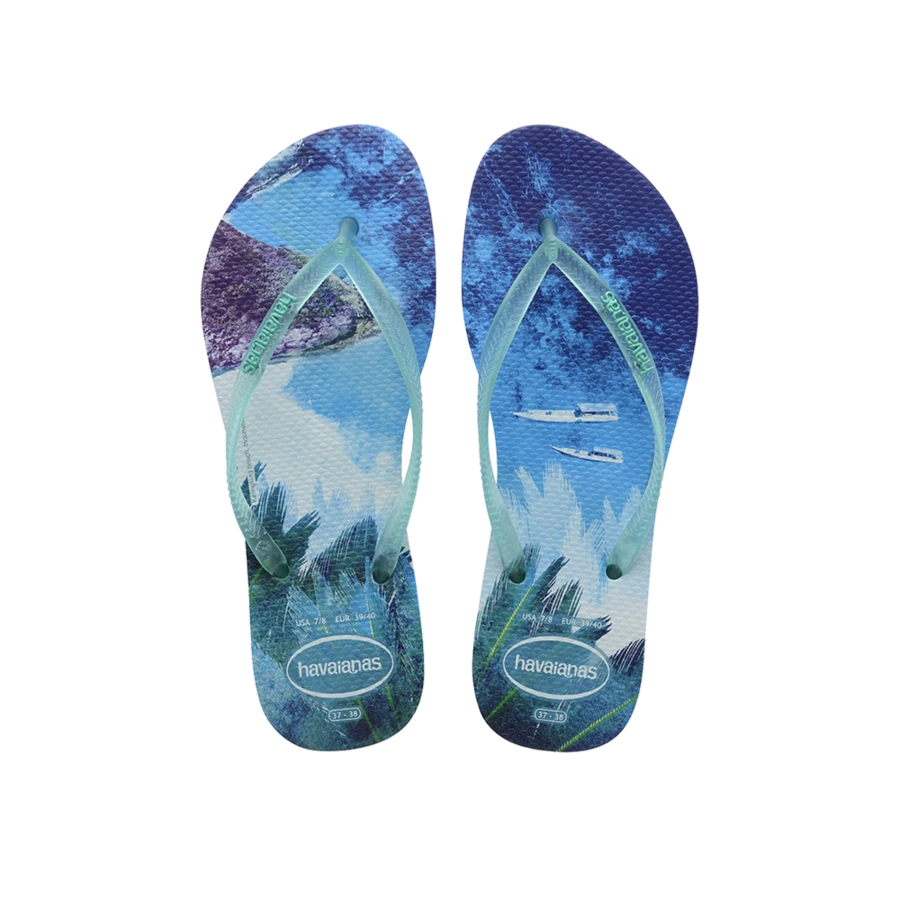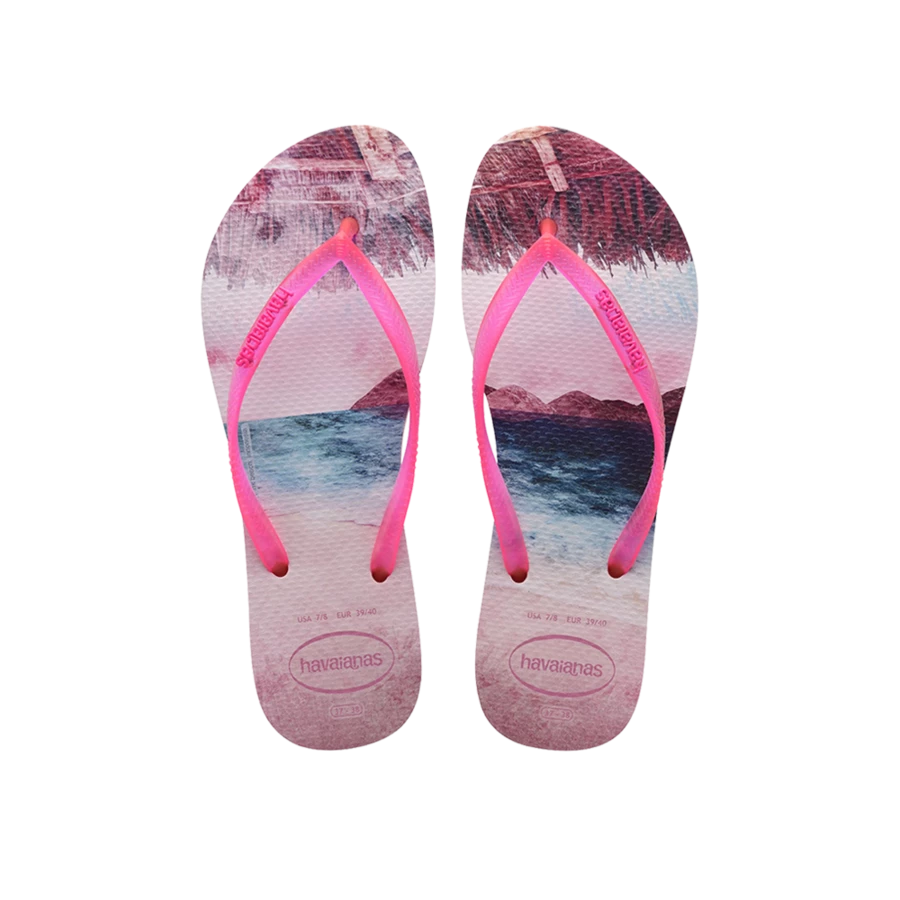 This year, Slim Paisage comes in a fun and really youthful design. It is inspired by those wonderful summer moments, with the flip-flop featuring a photograph on its footbed. Its neon coloured straps match the tone of each print.