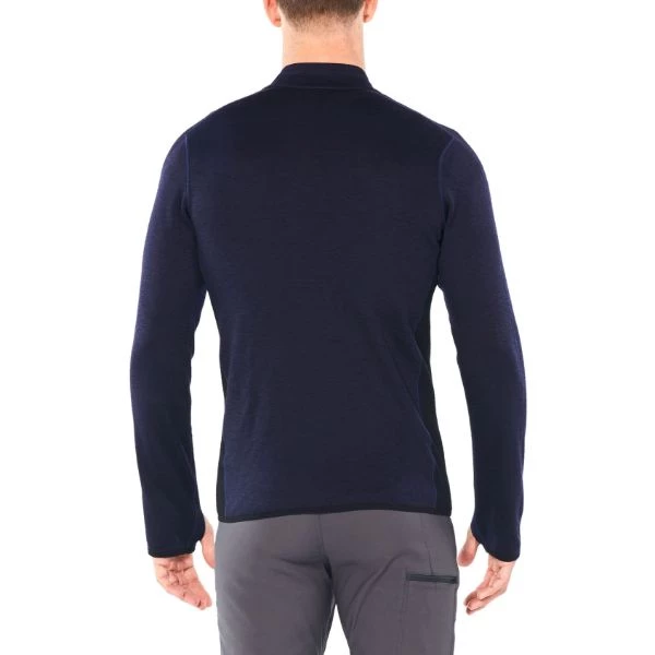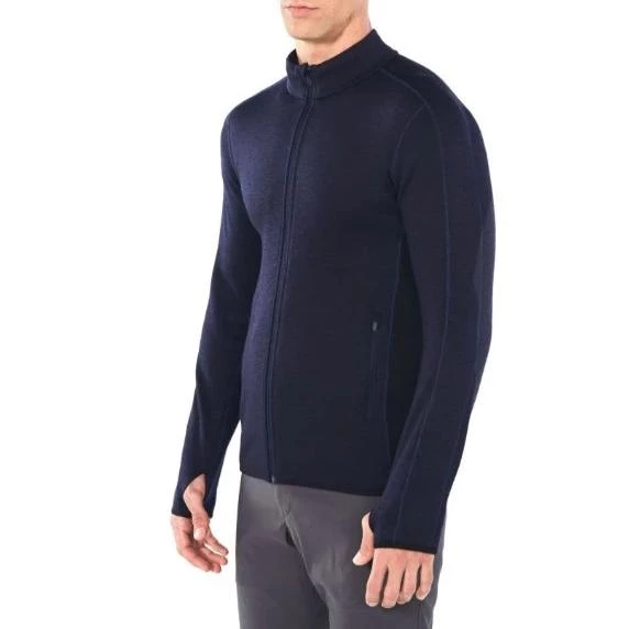 LYCRA® content for stretch and mobility, Reverse coil center front zip, Zipper chin guard and interior storm flap prevent chafing, Flatlock seams prevent chafing, Offset shoulder seams prevent pack rub, Forward set side seams for comfort, Raised zippered hand pockets for pack compatiblity, Drop tail hem for added coverage, Center back length: 73.4cm/29″ size L, Icebreaker tonal embroidered logo